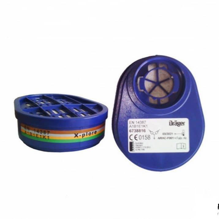 فیلتر ماسک شیمیایی دراگر مدل A1B1E1K1 از سیستم تنفسی در برابر بخارات و گازهای آلی محافظت می کند. این نوع محصول از جنس ABS و شامل بسته دو عددی و درجه فیلتراسیون A1B1E1K1 Bayonet می باشد. فیلتر ماسک های تنفسی شیمیایی برای مقابله با گازهای خطرناک تولید می شوند. هر گروه از این گازها و بخارات شیمیایی با یکی از حروف انگلیسی که طبق دستور العمل سازمان بین المللی کار (NIOSH) مشخص شده است، دسته بندی می شوند که برای فیلتر Bayonet شامل موارد زیر می باشد: A: قابل استفاده برای گازها و بخارات آلی با نقطه جوش بیش از 65 درجه سانتیگراد، به رنگ قهوه ای B: قابل استفاده برای گازها و بخارات مواد معدنی و ترکیبات آنها، به رنگ خاکستری E: قابل استفاده برای گازها و بخارات مواد اسیدی، به رنگ زرد K: قابل استفاده برای گازها و بخارات آمونیاک و مواد آمونیاک، به رنگ سبز 1: نشان دهنده این است که ظرفیت جذب آن کم است.