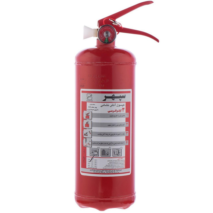 در بین وسایلی که برای کنترل آتش به کار میروند، کپسول آتشنشانی که حاوی پودر اطفا حریق بهصورت فشرده است، در خاموش کردن شعلههای آتش بسیار موثر عمل میکنند. این کپسولها با وزنهای مختلفی در بازار وجود دارند. کپسول 3 کیلویی آتشنشانی که از تولیدات شرکت «سپهر» (Sepehr) به شمار میآید، ازجملهی این محصولات است. این شرکت این محصول خود را به یک فشارسنج کوچک مجهز کرده است. برای استفاده از این محصول کافی است ضامن آن را خارج کرده و خروجی کپسول را به سمت شعلههای آتش بگیرید. سپس دستگیره را فشار داده و مسیر پاشش پودر را بهصورت جارویی حرکت دهید. وزن این محصول 4.6 کیلوگرم است و حمل و استفاده از آن برای همه افراد امکانپذیر نیست؛ اما عملکرد این وسیله باعث کنترل شعلههای آتش در مدتزمان کمتری میشود. روی بدنه این کپسول یک قطعهی فلزی کوچک قرار داده شده که میتوانید به کمک آن کپسول را روی دیوار نصب کنید.